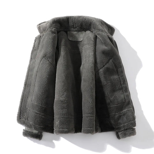 Damen Aviator Jacke aus Kunstpelz Anthrazitgrau mit Reißverschluss